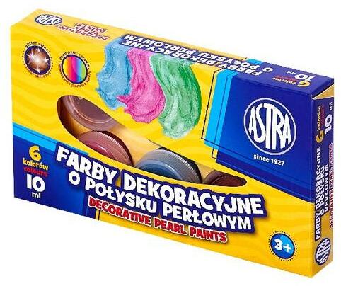 Dekorfesték ASTRA gyöngyház színek 6 db/készlet - Fotoland fotó és irodaszer webáruház - Rendelj raktárról, 1189-os áron. Gyors kiszállítás. Gyöngyházfényű dekoratív vízalapú festék, átlátszó, csillogó színek, lehetővé téve az eredeti dekoratív hatás elérését. Tökéletesen lefedik azokat a felületeket, amelyek jól elnyelik a vizet, pl. Papír, karton, kerámia és fa. A gyöngyfesték színei szabadon alkalmazhatók egymás mellett, mivel nem mosódnak egymásba. Szárítás után ellenállnak a kopásnak. A Pearlescent festékek jól keverednek az Astra poszterfestékekkel, új és érdekes színhatásokat adnak. A festékek konzisztenciája lehetővé teszi, hogy víz nélkül festést. Önmagabán 2-3 rétegben használható.