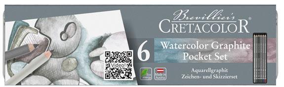 Cretacolor Watercolour Graphite Pocket Set vízzel elmosható grafitceruza készlet, 6 db-os, fémdobozos