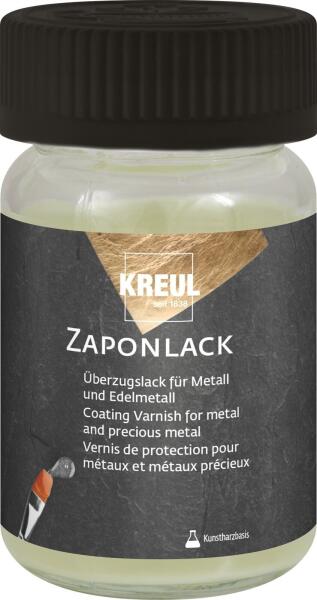 Ez egy automatizált szoftver általi fordítás:Magas fényű, átlátszó védőlakk fémhez. Korrózió és elszíneződés elleni bevonat. Ha sokáig szeretné megőrizni a szép dolgokat, elengedhetetlen a megfelelő védelem. A KREUL Zapon lakkal a belső és külső aranyozott tárgyak optimálisan védettek a színváltozás, a korrózió vagy a foltosodás ellen. A fémes lakk megakadályozza az aranyozott felületek nem kívánt károsodását. Az aranyozott felületre ecsettel visszük fel a KREUL Zapon gyorsan száradó lakkot. Ennek köszönhetően kedvenc tárgyai, beleértve a betonból, gipszből, terrakottából vagy agyagból készült tárgyakat is, akadálytalanul ragyognak. Magas fényű, átlátszó műgyanta alapú védőlakk fémre Megakadályozza a fényes felületek elszíneződését, elszíneződését és korrózióját (patina). Nemesfémekhez, mint például ezüst, réz, sárgaréz, bronz, ón, vas Fémlemez bevonatú felületek védelmére, különösen nedvességet visszatartó aljzatokon, mint például beton, vakolat, terrakotta és agyag Beltéri és kültéri használatra A felületnek tisztának, száraznak, zsír- és olajmentesnek kell lennie. Festés előtt hagyja az aranyozott tárgyakat néhány napig száradni Vigye fel vékony rétegben szintetikus ecsettel Alkalmas mártásra és permetezésre Porszáraz kb. 15 perc után, alaposan szárítsa meg kb Kefetisztítás KREUL kefetisztítóval Trófeák, vázák, ónkancsók, fémből készült tálcák (például ezüst, réz, sárgaréz, bronz, ón és acél) védelmére Számos fémlemezzel finomított felülethez, pl. beton, vakolat, terrakotta