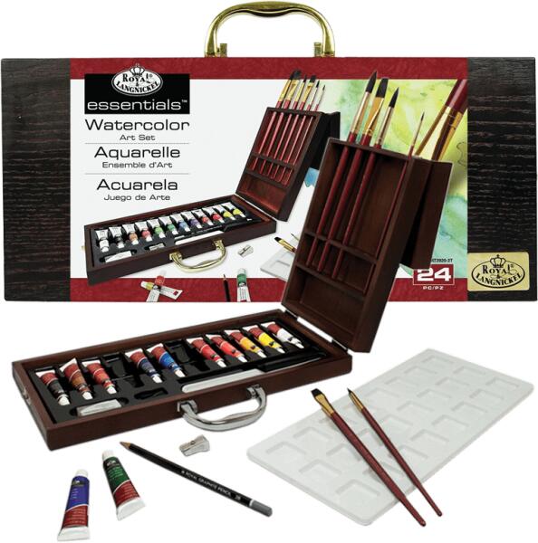 Akvarell festékkészlet fadobozban Royal & Langnickel - 24 db-os készlet