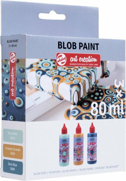 A Talens Art Creation Blob Paint egy használatra kész festék, amellyel tökéletesen egyenletes pöttyöket vagy festékcseppeket készíthetsz. A legjobb eredmény érdekében a festéket közvetlenül a praktikus adagolófúvókából vigye fel a sima felületre. Ezt a festéket nem kell keverni vagy hígítani, egyszerűen rázza fel a flakont, és máris kezdheti a festést!